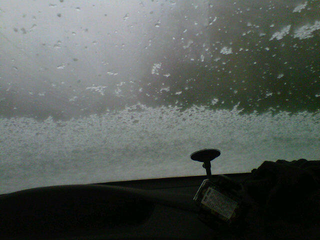 Davidi actually made it through before us - but we continued on, dropped off Lauren...went a few meters, and the car died. We called my husband who got some things and came to see if he could help, and we called the towing company - it took them three hours to get there. While we were waiting, it was hailing outside. This is a picture of the front window as the hail came down. Several people tried to help us but the battery wouldn't be boosted and nothing helped. The two truck finally got there and took the car. Elie went along for the ride while my husband drove me home and then went off to try to help figure out what the problem is. So, it's mid-day in Israel - the work day was a bust. I can work from home now finishing off things that need desperately to be done.